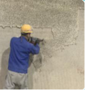 采用機械徹底、完整打磨混凝土基層表面,除去原表面的反堿、塵土、薄膜、油漆、表面涂層及其它外來物,并鏟除疏松、空鼓和蜂窩結(jié)構(gòu),使表面徹底浸透,除去積水和明水