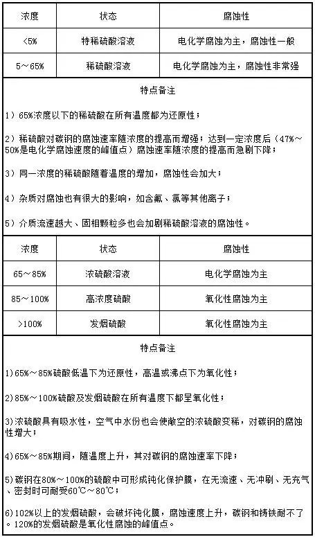 表1 市面上的硫酸常見的濃度、狀態(tài)及腐蝕特點(diǎn)